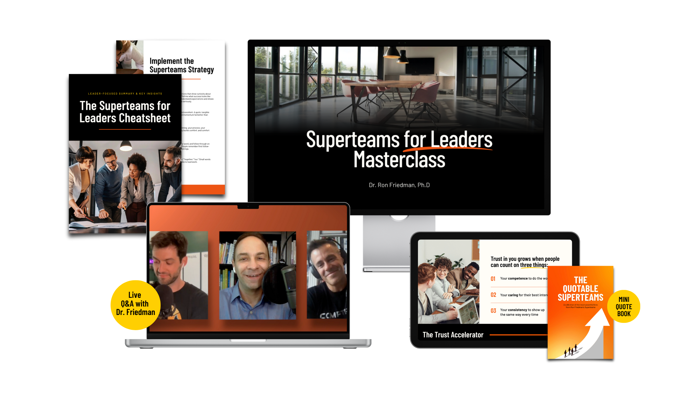 Dr. Friedman walks you through never-before-presented strategies used by leaders of Superteams — far beyond what appears in the book —and shows you how you can use them to lift your team without adding to your workload.